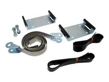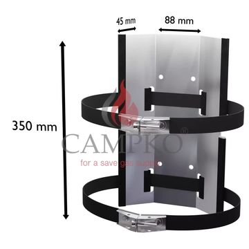 Holder i rustfritt stål og 3 stropper for montering av propan/butan LPG-tanker i bobiler og LPG-kjøretøy. Passer for alle sylindriske tanker med en diameter på 260–400 mm.