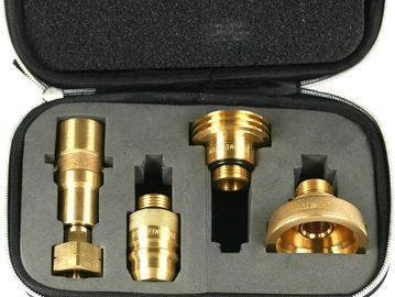 4 stk. DREHMEISTER LPG-gasskoblinger DISH, BAJONETT, ACME og EURONOZZLE i en stilig kasse og 22mm (W21.8) design for alle vanlige tanktilkoblinger.